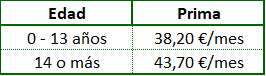 • Oferta extensible a cónyuge e hijos (residentes en el mismo domicilio que el titular de la póliza) y condicionada a que el alta del familiar se produzca en el mismo momento que la del trabajador.