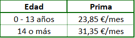 • Oferta extensible a cónyuge e hijos (residentes en el mismo domicilio que el titular de la póliza) y condicionada a que el alta del familiar se produzca en el mismo momento que la del trabajador.